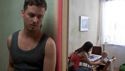 Der mittellose Franz Woyzeck (Tom Schilling) lebt mit Marie (Nora von Waldstätten) und dem unehelichen gemeinsamen Kind in einer kleinen Wohnung in Berlin-Wedding. Hier lauscht er, als Marie diesem eine traurige Geschichte erzählt. | Foto (C) Oliver Vaccaro/arte