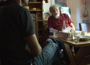 Die Legende von der Sexualität wird freundlich aufgeweicht und weder mit Gewalt noch mit Schmutz und Schuld in Verbindung gebracht. Nein, da ist eine enorm positive Energie: POSTCARD TO DADDY versteht sich vielmehr als ein Aufbruch in eine noch zu gewinnende Rede über Lust. Überhaupt fehlt dem Film jede Larmoyanz und Selbstgefälligkeit, - da ist eine gewisse Eitelkeit (Michael ist sexy, das ist gut für den Film), da ist Melodramatik, der Filmdreh findet unter den kläglichsten Bedingungen einer quasi 1-Mann-Produktion ohne große Mittel statt. Dennoch gelingt ein Ausnahmefilm: Was Stock antreibt, ist nicht Hass, er entwickelt trotz all dem Leiden echte Größe. Er sucht nicht Vergeltung. Er vermittelt am Ende etwas Großartiges. Während der Regisseur in die Wiederbegegnungsszene mit dem gealterten Vater Erinnerungsbilder vom Geliebten schneidet, den er durch Selbstmord verlor (Selbstmordversuche hatte auch Stock mehrmals unternommen), gewinnt der so lange ersehnte Dialog mit dem Vater Raum, dieser wird allmählich ent-bestialisiert: man sieht kein Monster, keinen verstockten Täter. Der Film lässt diesem solchen Raum, solches Innehalten nun doch, die Uhr tickt... Beunruhigend, wartend, das Ende offen.