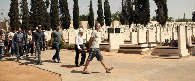Assistiert oder heraufbeschworen wird die prompte Mutation von/durch den Nachbarssohnemann Zooler (Tomer Kapon), der Sushi ausfährt und in seiner Freizeit Luftgitarre spielt... Eyal lässt sich von ihm Jointdrehen zeigen, und auch so lässt er sich mit ihm ein... Am Ende dieses explosiven Zeitraffers befinden sie sich beide auf dem Friedhof, wo die Grabstätte von Ronnie ist und neben der der Vater dann die beiden Grabstätten von sich und seiner Frau beim Friedhofswärter rerservieren will; aber der Platz ist halt bereits vergeben - ganz konkret für die gerade erst Verstorbene, auf deren Totenfeier sie (Eyal & Zooler) sich rein zufällig befinden; und ein schauspielerndes Kabinettstück liefert dann noch Uri Gavriel (als Refael), der seinerseits durch ablenkungsmanövrig unentfernbar Zeichen setztende Vogelscheiße auf der Windschutzscheibe seines Autos vor dem seelischen Totalzusammenbruch gottlob nochmal bewahrt zu werden schien...