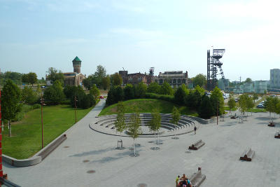 Bei der Planung und mittlerweile erfolgten Erbauung der Kulturzone wollte man sich der „schwarzen“ Vergangenheit stellen, die mit der Kohle und der Verschmutzung einherging. Sie sollte nicht einfach kaschiert werden, sondern Teil der Geschichte und des Selbstverständnisses der Region sein. Heute soll sich alles in Richtung „grün“ bewegen, und die Stadt und die Luft sind wesentlich sauberer als noch vor 10 Jahren. Der alte Förderturm [s. Foto o. re.] wurde restauriert und bewusst als Teil der Silhouette der Stadt erhalten, und er dient als Aussichtsplattform, die bequem mit einem Aufzug zu erreichen ist. Die Eröffnung des Hauptgebäudes wurde 2015 gefeiert.