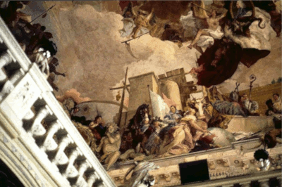 Der Hauptvertreter im italienischen Spätbarock Tiepolo macht sich schon als 20jähriger in Venedig selbständig und kann Zeit seines Lebens nicht über einen Mangel an Aufträgen im In- und Ausland klagen. Seine Vorbilder sind Tizian, Tintoretto und vor allem Veronese. Ab den 1740er Jahren ändert er seine Farbpalette, und helle Pastellfarben verdrängen die für ihn typischen erdigen Brauntöne. In Würzburg hinterlässt er sein Meisterwerk. Anschließend ruft ihn der spanische König und Tiepolo malt im Palacio Real in Madrid die Verherrlichung Spaniens, aber auf weniger Quadratmetern. Der junge Anton Raphael Mengs kommt ungefähr mit Tiepolo in Madrid an, entbarockisiert die Malerei und beherrscht sehr schnell den klassizistischen Kunsthimmel, während Tiepolos sakrale und profane Bilder für viele Jahrzehnte in Vergessenheit geraten.