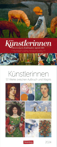 Der mit 48x54 cm großformatige Kunst-Kalender i>Künstlerinnen – Meisterwerke des 20. Jahrhunderts Kalender 2024 enthält zwölf Gemälde von Künstlerinnen der klassischen Moderne, die überwiegend mit Öl auf Leinwand gemalt wurden.
