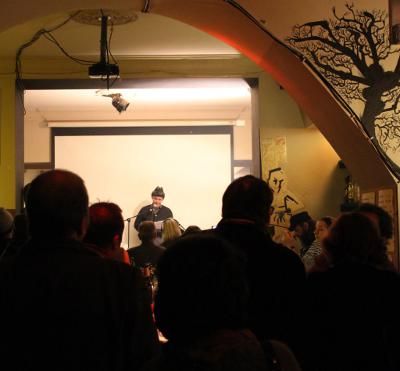 Anderson hat aus seiner hessischen Heimat zweiten Grades Nüsse mitgebracht. Er erzählt die Geschichte vom Nussbaum auf einem Hof an der Nidder wie ein anderer Peter Kurzeck. Die Nidder fließt in die Nidda und die Nidda fließt in den Main. Das verdient gesagt zu werden in der Moränenlandschaft des Panketals. Anderson erzählt, wie hinter Büdingen der Mond aufgeht, während die einen geschickter als die anderen Nüsse knacken. Basaler geht es nicht. Die Geschickten zeigen erst ihre Tricks, die jedem Primaten geläufig sind, nur nicht allen Menschen. Dann zeigen sie, wie man es auch machen kann. Man muss so einer Nuss doch nur mit dem Boden seiner Bierflasche kommen. Das lässt jetzt jene ein bisschen blöd aussehen, die eben noch dachten, sie hätten ihr Repertoire erweitert. Warum einfach, wenn es auch kompliziert geht. Bert Papenfuß ist „sich selbst gegenüber skeptischer als früher“. Das sagt er so. Papenfuß liest Gedichte aus den späten achtziger Jahren. Ein Gedicht heißt Ohrenbetäubende Scheiße, ein lodernder Titel. Die Kneipe im französischen Viertel des Prenzlauer Bergs säuft ab im Interesse. Mir wird zugetragen, wie überlaufen solche poetischen Hochämter vor zwanzig Jahren gewesen seien. „Ist doch keiner gekommen“, findet einer ohne Platz. „Brücken bäumen sich auf und bersten stillschweigend.“
