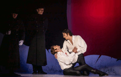 Ivan Boiko (als Lenski) und Aubin Le Marchand als Onegin am Kroatischen Nationaltheater Split | Bildquelle: hnk-split.hr
