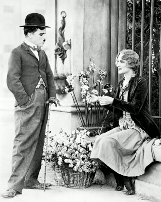 Die erste Begegnung zwischen dem Tramp und dem blinden Blumenmädchen - City Lights von Charlie Chaplin | Bildquelle: Wikipedia