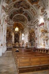 Der Innenraum der erst im Jahre 1983 zur päpstlichen Basilika erhobnen Klosterkirche, dessen Kirchturmspitze Anfang diesen Jahres dem Orkan mit Namen "Emma" schnöderdings zum Opfer fiel, wurde von den Gebrüdern Egid Quirin & Cosmas Damian Asam ausgestattet. Er ist eine theatralische Verlautbarung des Augensinns; es gibt in ihm so Vieles und so Ungeheuerliches, Schönes als wie Hässliches, zu sehen, dass es einem stellenweise schwindlig wird und ist, das Alles und in seinem ganzen Umfang optisch einzufangen - gilt, im Übrigen, als Meisterwerk der spätbarocken Kirchenkunst!