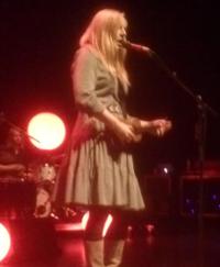Die Bühne betritt die Musikerin und Songschreiberin Judith Holofernes, die eigentlich Judith Holfelder-von der Tann heißt, mit ihrer Band erst eine halbe Stunde später in einem weiten Pelzmantel, auf dem sich ein Tiger abzeichnet. Ihre langen blonden Haare fallen ihr über das Gesicht, und sie singt mit ihrer gewohnt kieksigen Stimme „Nichtsnutz“, stets schnoddrig Wortendungen verschluckend. Die Frontfrau der seit 2011 pausierenden Band Wir sind Helden legt bald ihren Mantel ab. Mit entspannt-selbstironischen Songs über Müßiggang, Widerspruchshaltungen, Beziehungsarbeit, Elternsein und familiären Alltag weiß sie stets zu überraschen. Zwischendurch plaudert die 37jährige gerne - etwa über Diskotheken in Japan, in denen man im Sitzen tanzen kann. Der Konzertsaal ist bestuhlt, und ein Großteil der Sitzreihen ist besetzt. Mit dieser Bemerkung möchte Holofernes wohl jene der etwa 500 Konzertbesucher grüßen, die sich nicht vor der Bühne tummeln - ohne sie „dissen zu wollen“, so die gebürtige Kreuzbergerin im berlinernden Jargon. Die Liedermacherin grüßt besonders auch ihre Mutter, die sie unter den Zuschauern weiß, was sie daran erinnert, zwischen den Sets auch genug Wasser zu trinken. Neben den Songs ihres 35minütigen, im Februar diesen Jahres erschienen Album Ein leichtes Schwer spielt sie auch Songs anderer Künstler, die sie frei ins Deutsche übersetzte.