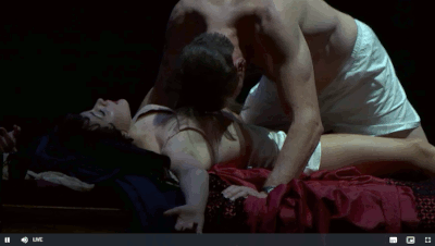 Vera-Lotte Boecker (als Fusako) und Bo Skovhus (als Ryuji) in Das verratene Meer von Hans Werner Henze an der Wiener Staatsoper | Screenshot des Live-Streams v. 14.12.2020 auf play.wiener-staatsoper.at