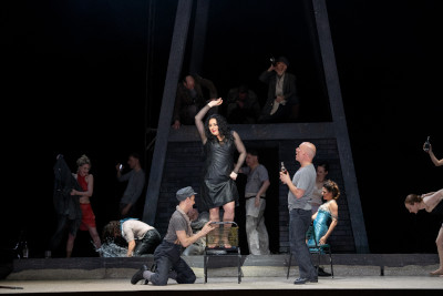Die in Tiflis geborene Georgierin konnte ich schon mal, allerdings nur kurz, in Alexander Newsky von Prokofjew, wo sie "Totenfeld" (Satz 6) zum Besten gab, vor einem Jahr erleben; und da war mir vollends klar, zu welcher Suggestionsarbeit Rachvelishvili fähig ist. Entwaffnendes Kalkül mit einem raumgreifenden Alt, welcher sowohl "nach oben" wie "nach unten" exzessiert. Laut Einführungsvortrag hätte sie in 2010 die Rolle in der Kušej-Inszenierung bereits durchgespielt, sie war und ist also mit dieser Produktion vertraut - die hob angeblich auf stark sinnbeeinträchtigende Wüsten- und Hitzeeinflüsse noch viel, viel weiter südlich als in Andalusien ab; man schwitzt und hechelt, und man(n) steht womöglich ganz besonders unter einem ganz besonders starken sexuellen Druck, ein paar gut aussehende (halbnackte) Statisten demonstrieren dann auch das erotisch aufgeladene Gesamtgefühl des anwesenden Carmen-Personals, bestehend aus Soldaten, Schmugglern und geschlechtsaktwilligen Zigarettenarbeiterinnen. Rachvelishvili freilich braucht so tierisch Aufgesetztes von Regie wegen mitnichten, schon ihre aus sich heraus knisternde Individualpräsenz machte/macht klar, wer hier über dreieinhalb Stunden lang der wahre Herr im Hause ist!