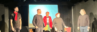 Und Solomonovs neuestes Stück wirkt - vom Mitlesen der Simultanübersetzung her - als Gegenwartskomödie, in der es um ein verheiratetes Paar jüdischer Abstammung geht, das auf der permanenten Suche nach einem ruhigen und sicheren Ort auf unserem Planeten ist. Dem Vernehmen nach ist es aktuell in Israel gestrandet; es könnte auch gut möglich sein, dass die Zeit der Handlung tatsächlich unmittelbar nach dem Terrorangriff der Hamas angesetzt ist, diverse Bombeneinschläge und Schusswechsel, die die Handlungsbeteiligten hin und wieder wahrnehmen, deuten darauf hin. Das Ganze verliert sich mehr oder weniger - ein sog. Fluchtexperte ist für die zwei Exilierten behördlich angesetzt, es gibt also Abhängig- und Verbindlichkeiten; der Typ scheint etwas pervers zu sein, und für den Besitz eines von Jeschen getragenen Schlüpfers würden sich gewisse Vergünstigungen bei der Neu-Verortung der Familie im Heiligen Land (oder sogar auf einer südpazifischen Fantasieinsel, auf der die Ureinwohner männliche Genitalien sammeln und verkaufen) ergeben. Schlussendlich taucht der verlorene Sohn noch auf usw. usf. / Olga Romanova (als Jeschen), Alexander Delfinov (als Fluchtexperte), Maxim Kurnikov (als Samuel) und Alexey Dedoborshch (als Teo) lesen die verteilten Rollen.