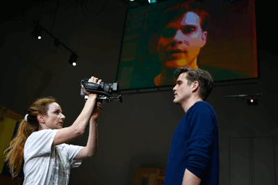 Bei Rüping wird das Thema AIDS dann allerdings vollkommen ausgeklammert - - der sich in der ersten halben Stunde der Aufführung auf das penetrant Liebenswerteste an das Publikum ranschmeißende Benjamin Lillie erklärt seine Hauptfiguren-"Sache" lediglich als Krankheit, und dass er halt nicht mehr allzu lang zu leben hätte oder so.
