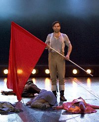 Andreas Döhler spricht einen Aufruf des Zentralkomitees der Nationalgarde (Paris am 5. April 1871) in LA PÉRICHOLE von Jacques Offenbach an der Komischen Oper Berlin - Foto (C) Iko Freese