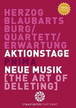 An der Staatsoper Stuttgart gibt es Aktionstage Neuer Musik. Hier wird dann auch die Trilogie mit HERZOG BLAUBARTS BURG / QUARTETT / ERWARTUNG, die am 30. Mai 2010 Premiere hatte, zum Angebot gestellt. - Nähere Infos unter http://www.staatstheater-stuttgart.de