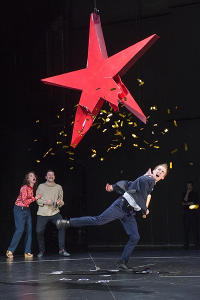 Welche Bedeutung kann es schon haben, wenn man nichts weiter tut, als auf einen Abzug zu drücken? Im Bruchteil einer Sekunde wird etwas ausgelöst, das für einen selbst ebenso schnell wieder vorbei sein kann. Trotzdem saß Hugo zwei Jahre lang im Gefängnis. Er tötete einen Politiker ganz im Sinne der Führungsebene der kommunistisch-sozialistische Einheitspartei des Proletariats. Frisch entlassen begegnet er der Parteifreundin Olga sowie dem zur Führungsriege der Partei gehörenden Louis. Redenschwingend wirbt er auf der leer kreisenden Drehbühne für seine Wiederaufnahme in die Partei. Seine (ehemaligen) Parteikollegen beäugen ihn argwöhnisch und umkreisen ihn misstrauisch. Marco Štorman inszeniert Jean-Paul Sartres Drama Die schmutzigen Hände (1948) effektvoll mit wenigen Requisiten und provokanten Bildern.