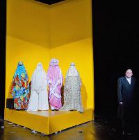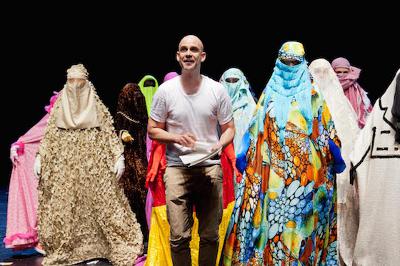 Der Konflikt der Weltreligionen wird in Löschs Inszenierung nicht gelöst. Der Lehrer schiebt die ihm in einer zu intoleranten Religion verhafteten Schüler schließlich ab und hinter die Bühne. Er verliest gegen Ende teilweise verständliche, zunehmend jedoch rassistisch werdende Antworten von Bonner Bürgern auf die Frage, ob der Islam denn nun eigentlich zu Bonn dazugehöre. Während er die Antworten zerreißt und auf den Boden wirft, vollführen die übrigen Darsteller unter vielfarbigen Burkas im Hintergrund eine Tanzchoreographie. Irgendwann wird der Lehrer von ihnen umkreist und schließlich selbst verschluckt. Auch er verschwindet unter einer Burka und wird im Tanz ununterscheidbar. Ein finaler Sieg für den Islam? Unter den vielen bunten Burkas bieten die Darsteller mit grazilen und formschönen Bewegungen eine gut aufeinander abgestimmte Choreographie und eine bewegende finale Einlage. Das letzte Wort sprechen danach dann doch die jungen Muslime in einer Ansprache an das Publikum. Sie fragen, wer sie denn nun eigentlich sind und sein wollen – deutsch oder muslimisch oder beides? Die Adaptation lässt verschiedene Stimmen zur aktuellen Diskussion um den Islam, den Terrorismus und Religiosität gewagt und mutig zu Wort kommen und schafft es so effektvoll, dem Drama um religiöse Toleranz ungeahnte neue Akzente abzugewinnen.
