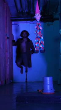 Die Zwei (Ashraf / Charlotte) haben - bis zum Stückende - nichts oder ziemlich wenig miteinander zu schaffen. (Ein echtes Manko dieses einstündgen Stücks von Gerda König / Gitta Roser, das sie Cellar and Secrets betitelten.) Er spielt dann einen Exhibitionisten, sie leckt ab und zu an ihren Füßen; beide frönen scheinbar ihren sexuellen Wünschen und Gedanken...