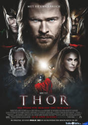 Der Film Thor setzt nach einem kleinen Ausflug in die Vorgeschichte bei der Krönungsfeierlichkeit für Thor (Chris Hemsworth) ein, der seinem Vater Odin (Anthony Hopkins) auf den Thron folgen soll. Die Zeremonie wird durch einen Affront von Soldaten des Erzfeindes Laufey (Colm Feore) gestört. Odin reagiert gelassen, aber Thors ungezügeltes Temperament verleitet ihn zu einem Gegenschlag. Um den Frieden nicht zu gefährden, bestraft Odin seinen Sohn. Er beraubt ihn seiner magischen Kräfte und verbannt ihn auf den aus seiner Sicht minderwertigen Planeten Midgard, auch unter dem Namen Erde bekannt. Dort fällt er der Astrophysikern Jane Foster (Natalie Portman) und ihrem Mentor, dem Forscher Professor Andrews (Stellan Skarsgard), buchstäblich vors Auto. In seinem väterlichen Zorn hat Odin Thors Hammer gleich mit auf die Erde geworfen. Aber der ist so tief in einem Stein versenkt, dass Thor ihn erst befreien können wird, wenn er seine Lektion gelernt hat. Das ist das besondere an diesem Superhelden, der in diesem Moment ja keiner mehr ist. Er muss sich mit seinen eigenen physischen und mentalen Kräften begnügen und seine Überheblichkeit und sein Ungestüm zügeln lernen. Erst wenn er Selbstbeherrschung, Umsicht und Einsichtsfähigkeit gelernt hat, wird er in der Lage sein, das himmlische Königreich Asgard nach göttlichen Regeln und zum Wohle aller zu regieren. Hier wird ein Gott also in eine menschliche Lage versetzt, was recht amüsant inszeniert ist.