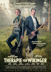 Als Anker (Nikolaj Lie Kaas) nach 15 Jahren aus dem Gefängnis entlassen wird, findet er seinen Bruder Manfred (Mads Mikkelsen, King's Land, 2024) ) in einem kritischen Zustand vor. Hatte dieser sich als Kind für einen Wikinger gehalten und war mit einem Wikingerhelm herumgelaufen, hält er sich nun für John Lennon. Er leidet an einer ausgeprägten dissoziativen Identitätsstörung, und wenn sein Umfeld nicht entsprechend reagiert, springt er schon mal aus dem Fenster – egal aus welchem Stockwerk – oder aus einem fahrenden Auto. Drehbuch und Regie von Therapie für Wikinger stammen von Anders Thomas Jensen, und der lässt Manfred die Todessprünge unbeschadet überstehen. Da dieser derjenige ist, der das Geld von Ankers damaligem Raubüberfall vergraben hat, steht Anker nun vor einem Problem: Er muss seinen Bruder so stabilisieren, dass dieser sich wieder daran erinnert, wo genau im Wald er das Geld deponiert hat. Dumm nur, dass sie dazu vorübergehend in ihrem Elternhaus leben müssen, in dem sich in ihrer Kindheit Dinge zugetragen haben, an die sich beide nicht erinnern wollen. So wird die Geldsuche zu einem andersartigen Psychotrip, den Jensen in seiner ihm eigenen Art als schwarze Komödie inszeniert und der seine Protagonisten in einer Art Versuchsanordnung vor nahezu unlösbare Aufgaben stellt und dabei wieder einmal seinen ganz eigenen absurden Mikrokosmos erschafft.