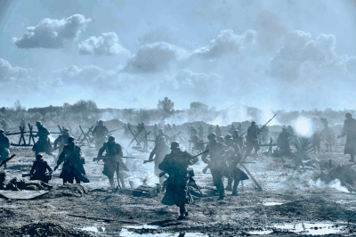 Dass ich (und womöglich alle anderen, die diesen neuesten Kriegsfilm sahen oder sähen) geradezu reflexhaft an die von den Russen überfallene Ukraine dachten und denken würden, liegt ganz unvermeidlich auf der Hand.
