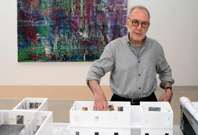 Gerhard Richter in seinem Atelier bei der Arbeit am Modell für die Ausstellung im Museum Barberini, 2018 | Foto (C) Hubert Becker