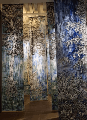 Et comme une faïence bleue (dt.: Zauberwald) von Salome Fauc - im Eingangsbereich der Ausstellung SORCIÈRES im Musée d´Histoire de Nantes Foto: Jean-Noel Pettit