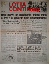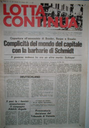 Die Titelseiten der Zeitung „Lotta continua“ (Der Kampf geht weiter) Oktober 1977 nach der Entführung Schleyers durch die RAF und die Titelseite der Ausgabe vom Februar 1977