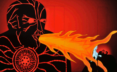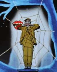 Vor der Schlange rennt Tamino zu Beginn durch einen Wald, bei der Feuerprüfung werden er und Pamina mit einem feuerspuckenden Ungeheuer konfrontiert. Aber nichts passiert wirklich: Alles ist nur ein magischer Trick durch Projektionen. Das sieht teilweise spektakulär aus, ist wirklich gut gemacht und hat Charme. Und da das Ganze ohnehin mit einer gewissen Patina produziert wurde (manchmal sieht es so aus, als würde das Bild flackern), stört auch nicht, dass die Projektionstechnik 15 Jahre nach der Entstehung längst fortschrittlicher geworden ist.