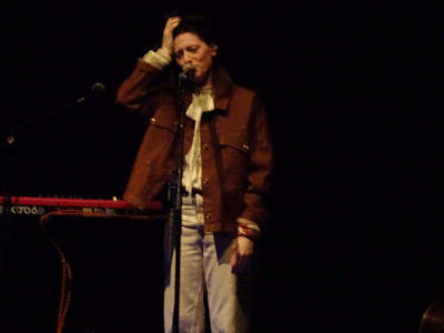Die Ausnahmekünstlerin Kat Frankie tritt danach auf. Sie singt einleitend das sphärische „Bina“ mit wandlungsfähigem und voluminösem Stimmorgan. Die Bühnenbeleuchtung ist dabei ebenso dunkel wie ihr Alt-Timbre. Der Songtitel „Bina“ trägt den Namen ihres Harmoniums und ist der Eröffnungstrack ihres Albums Please Don’t Give Me What I Want von 2012. Die 47-Jährige hängt sich, androgyn wirkend, lässig eine Gitarre um. Sie lässt filigrane Harmonien anschwellen, die fortan im Saal des Gloria schweben. Die Australierin, die seit 2004 in Berlin lebt, singt mit künstlerischer Strenge bedächtig, sanft und kraftvoll. Ihre Performance wirkt innig, hingebungsvoll und sehr konzentriert. Die Künstlerin arbeitete in Sydney als Innenarchitektin, bevor sie nach Berlin kam und hier mit Künstlern wie Olli Schulz oder Clueso zusammenarbeitete und auch im Duett live auftrat. Anfangs mutet ihr Gig ein bisschen introvertiert, unnahbar und verhalten an. Doch gleichzeitig bewahrt sich Kat eine geheimnisvolle und mysteriöse Aura. Nach dem Eröffnungssong begrüßt sie ihre Fans herzlich. Sie meint, dass dies ihre erste Solo-Konzertreise seit Langem sei. Auch spiele sie nun erstmals vor bestuhltem Publikum.