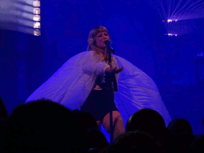 Mieze Katz, die mit bürgerlichen Namen Maria Mummert heißt, wechselt quasi minütlich extravagante Kleidungsstücke und präsentiert charakteristische Accessoires. Die 49-Jährige nahm im vergangenen Jahr auch an der VOX-Staffel Sing meinen Song – Das Tauschkonzert teil. Für Songs aus ihrem Solowerk bahnt sich Mieze Katz mit vier weißen, heliumgefüllten Luftballons einen Weg durch das Publikum. Im hinteren Saalbereich performt sie „Dafür oder dagegen“ und „Hell Sehen“. Sie trägt dabei auch die Strophen vor, die auf ihrem Album von Gesangspartnerinnen wie Eva Briegel, Wilhelmine oder Namika übernommen werden. Im schwebenden Flow wirken Songs wie „Buntes Konfetti“ sanft und intim.
