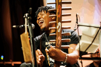 Sinaubi Zawose mit seiner Schalenspießlaute - im gemeinsamen Konzert mit der lautten compagney BERLIN am 15.11.2025 im Berliner Humboldt Forum | Foto (C) Frank Sperling