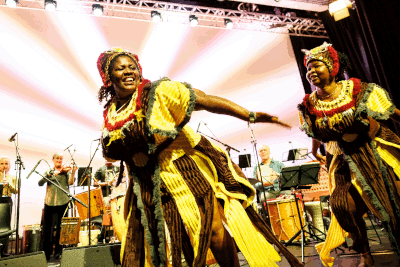 Fünf Mitglieder der legendären tansanischen Familie Zawose vereinigten sich mit der in München geborenen Mezzosopranistin Julienne Mbodjé, dem US-amerikanischen Bass und Lautenisten Joel Frederiksen sowie elf Instrumentalistinnen und Instrumentalisten der von Wolfgang Katschner (an der Laute) geleiteten lautten compagney BERLIN zu einem fast zweistündigen Programm inkl. schmissiger Zugabe, die das Publikum letztlich von seinen Sitzen riss.