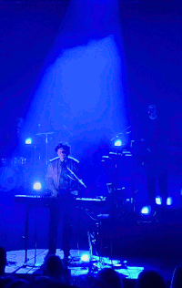 Skulpturale Lichtkunstwerke schimmern effektvoll zwischen den eher im Dunkeln positionierten Bandmitgliedern. Kleine Bodenlampen, in regelmäßigen Abständen verteilt, leuchten mal in Blau, mal rötlich. Bühnenscheinwerfer scheinen stets in Bewegung. Das Licht ist auch mal in das Publikum gerichtet...