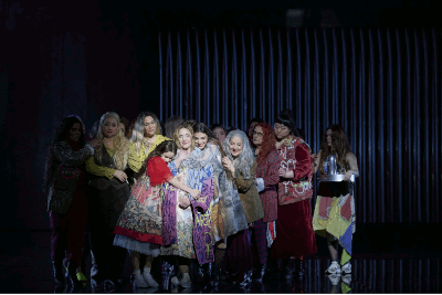 Dialogues des Carmélites ist eine Oper für Frauenstimmen. Rachsel Wilson, Evelyn Herlitzius, Simone Schneider, Diana Halller, Caudia Muschio, Helene Schneidermann und Catriona Smith liefern sich ein Gipfeltreffen auf Augenhöhe. Auf so hohem Niveau dürfte diese Oper nur an wenigen Häusern zu besetzen sein. Das gilt auch diesmal für den Chor, dem die Regie viel Aufmerksamkeit geschenkt hat.