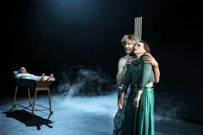 In der Inszenierung gibt es optisch noch eine zweite Ebene: der Bezug zu den USA. Das Haus auf der Bühne erinnert an Bilder von Edward Hopper, Faust und Co. sehen sich am Ende in Hollywood wieder, und ein mittelalter Mann (Faust in einer anderen Lebensphase?) sitzt in seinem Haus vor einer Wand mit Fotos und Bindfäden, was an Profiler und CSI-Storys gemahnt. Auch musikalisch wird eher geklotzt denn gekleckert: Gleich am Anfang wird es mystisch mit „O Fortuna“ aus der Orffs Carmina Burana. Das ist also der Erdenkreis mit seinen Darstellenden bzw. das Kaleidoskop des menschlichen Daseins.