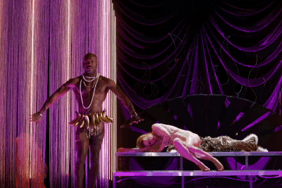 Arias ihrerseits belegte die Historie der Anita Berber mittels groß projizierter Fotos, Filmausschnitte und Zeitungsartikel auf die 20er-Jahre-Glamourbühne von Irene Ip; die vorzügliche Recherchen hierzu unternahmen River Roux und Bibiana Mendes.