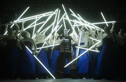 Was aber diesem Werk - Achtung: Wortspiel - sehr wohl steht, ist das Bündnis, welches Bühne und Bauhaus-Tradition hier eingehen. Das heißt: Zum Raum wird hier die Funktion. Oder anders: Quadrate, Kreise, klare Linien – also Geometrie, aber wie. Geradezu ein Meisterstreich von Jan Steigert ist sein schwarz lackierter Walkürenwürfel (denn von einem Felsen kann jetzt nicht mehr die Rede sein), welcher sich auf Knopfdruck in eine elegante Treppe verwandeln lässt. Unterbühne und Schnürboden stehen selten still, es wird gepixelt und projiziert, was die Apparate hergeben, Erinnerungen an den Bayreuther Design-Ring (Alfred Kirchner / rosalie) werden wach. Dass da auch Murks dazwischen ist - rote Blutkörperchen zur Blutsbrüderschaft, buntes Geflacker zum Trauermarsch - darf man gern übersehen.