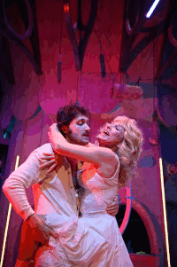 Die resolute Wirtin greift sich hier mit ihrem berechnenden Günstling Pankratz (Janek Maudrich) den nächsten großmäuligen Versager. Das Maudrich nebenbei auch als ehemaliger besitzergreifender Geliebter Evas Willibald Boxer auftritt, passt gut ins toxische Männerbild. Nur ist das hier auf die Dauer der fast drei Stunden doch etwas zu klamaukig nett und bis zum Walpurgisnacht-Kostümumzug skurril arrangiert. Dass der heute oft zitierte Vergleich zur Weimarer Republik hinkt, ist auch Regisseur Bosse im Programmheft aufgefallen. Und das eigentlich Erschreckende des Abends dann nur seine Harmlosigkeit.
