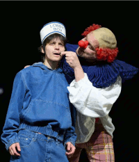 Sarah Waldner (als Viola) beim Crossdressing mit Marcel Hoffmann (als Narr) in Was ihr wollt - am Schauspiel Koblenz | Foto © Matthias Baus