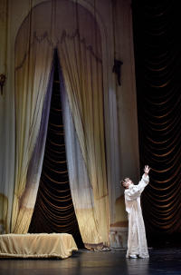 Warum Sophie Rois in René Polleschs Stück Cry Baby von Beginn an so müde ist oder was daran zum Weinen wäre, lässt sich allerdings an diesem Abend nicht wirklich eindeutig aufklären. Eindeutigkeit ist René Polleschs Sache auch nie gewesen. Er arbeitet auch am DT viel mit versteckten Anspielungen, Zitaten und popkulturellen Verweisen. Es geht um schaumgebremsten Ehrgeiz gegen bedingungsloses Karrierestreben, Loser und Genies sowie die schwierige Klärung des Unterschieds zwischen einem „aufstiegssüchtigen Talent und einem verbissenen Karrieristen“. Für welche Daseinsform des Künstlers sich der Autor mehr begeistert, lässt sich unschwer erahnen. Die Diva Rois plädiert für den göttlichen Schlaf, das verdiente Ruhen nach dem Schaffensprozess - will ins plüschige Bett und wird doch immer wieder von einem lautstarken Chor hellwacher junger Damen in Seidenpyjamas daran gehindert. Diskurs-Verstärkung gibt es von der ebenfalls bewährten Pollesch-Schauspielerin Christine Groß sowie Judith Hofmann und Bernd Moss vom DT-Ensemble.